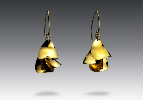 These earrings are forged to capture the light! With every movement, they change and dance with color and light. A 5 petal option is also available. Please email for more information. Available in a variety of metal choices. Shown in Sterling silver and 14kt yellow gold.